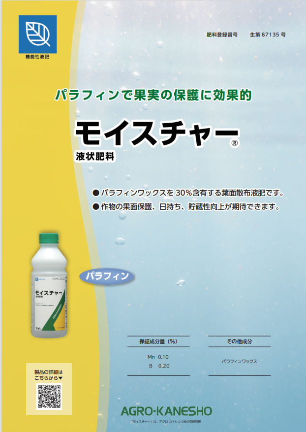 パラフィンワックスを30%含有する葉面散布液肥です。